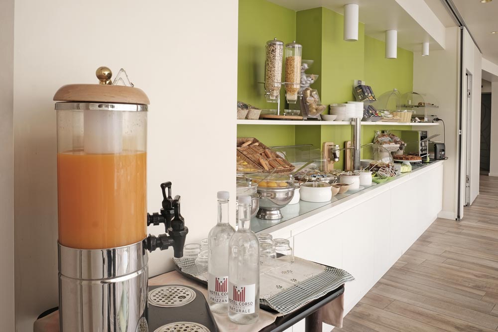 A large and bright hall, with wide windows overlooking the street, will welcome you when entering Hotel Corso.